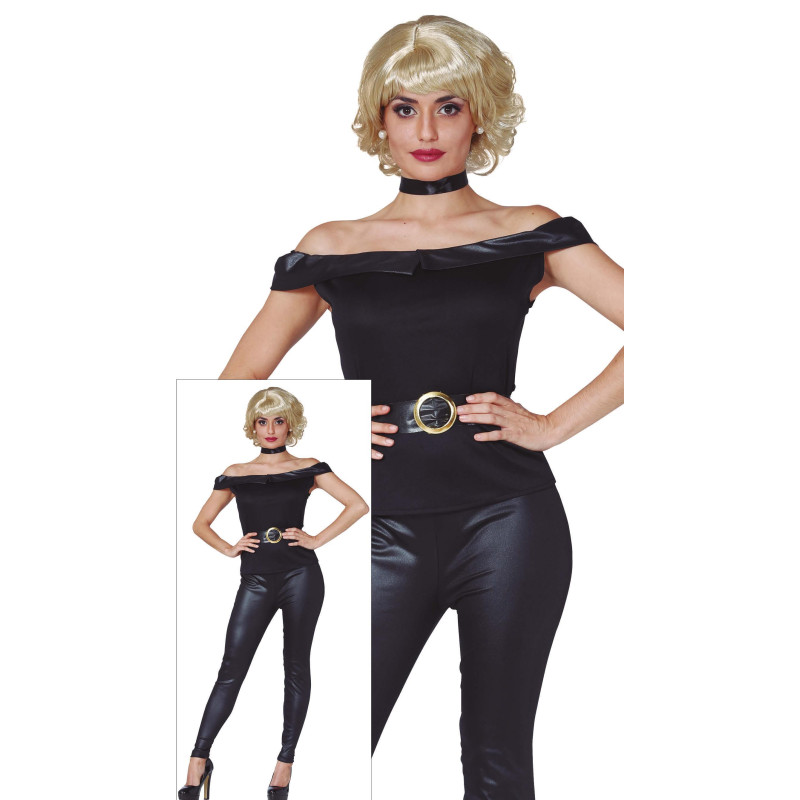 Step into the iconic “Bad Sandy” look with this eye-catching costume! The sleek black design is both elegant and figure-enhancing, giving you a confident and standout appearance. The off-shoulder top, shiny fitted trousers, and statement belt with buckle create an instantly recognizable and fashionable outfit.