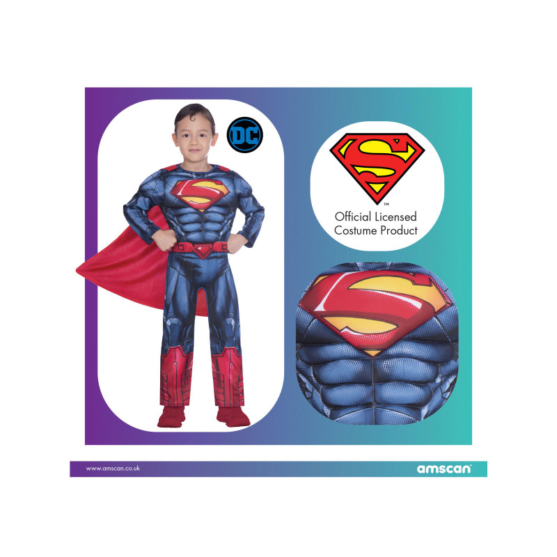 This kids carnival costume is comfortable, elastic and does not restrict movement, making it ideal for active parties and longer wear. The padded chest creates a muscular body effect, while the cape completes the classic Superman look. Made from 100% polyester, the costume is lightweight and easy to care for.