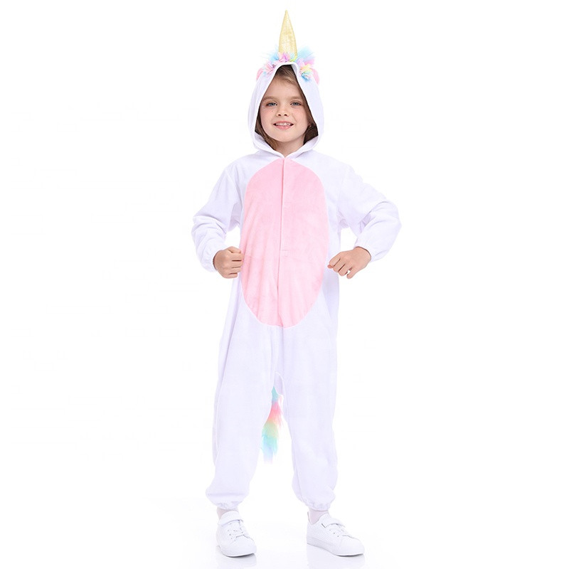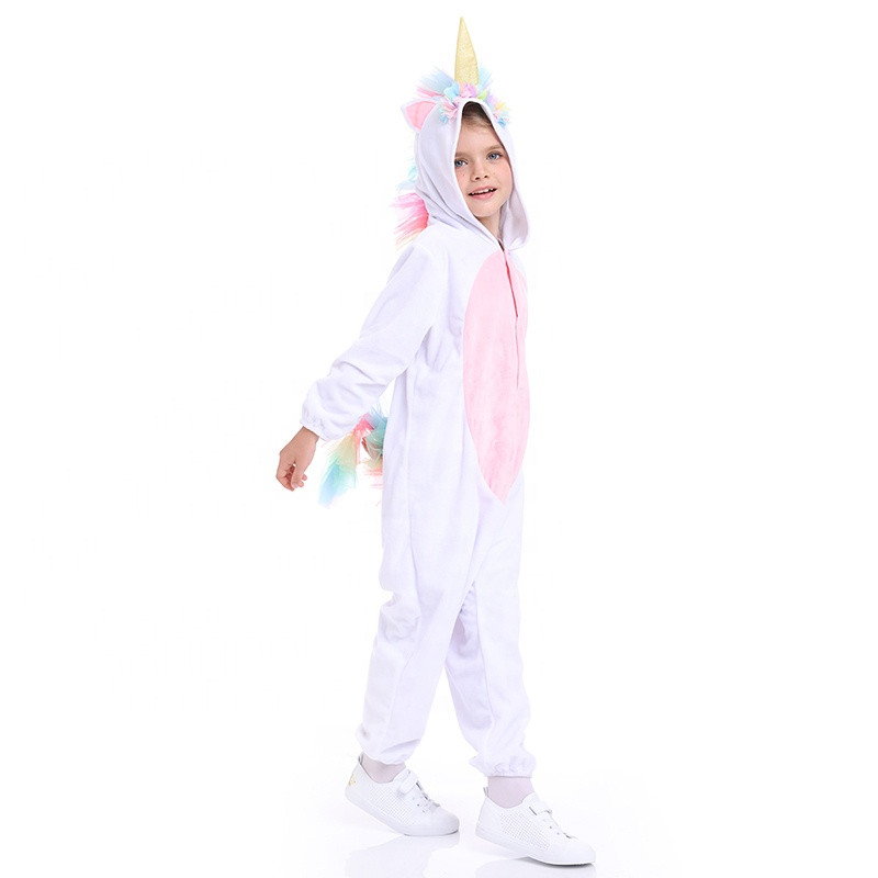 This unicorn costume for children is a playful and eye-catching choice for any dress-up occasion. The one-piece jumpsuit is made from soft fabric, ensuring comfort during longer wear.