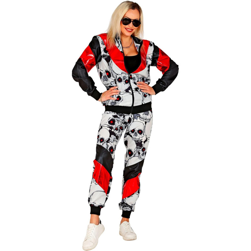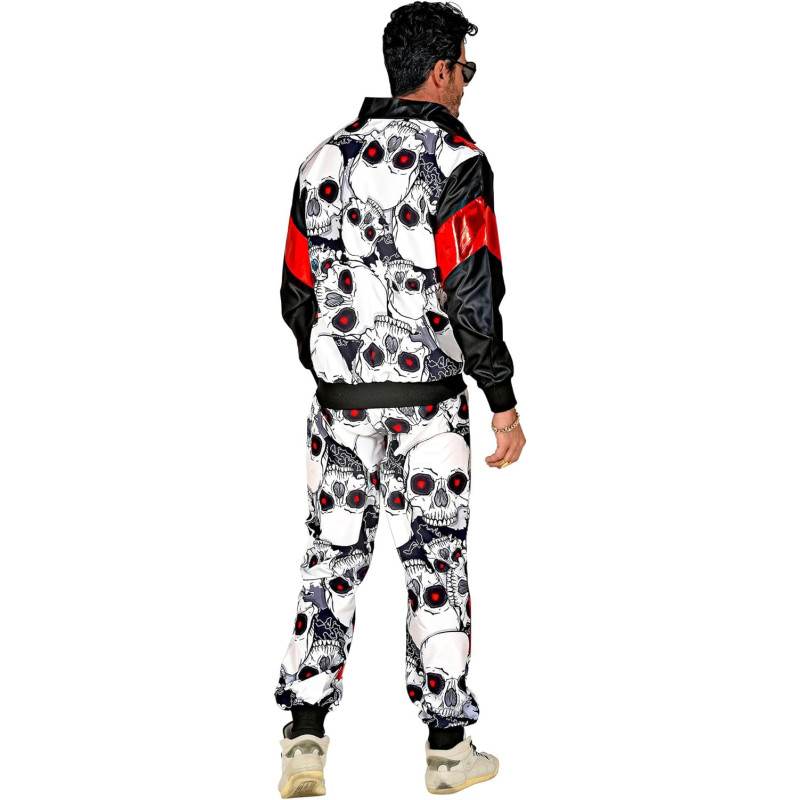 Drąsus ir šiuolaikiškas: juodas ir raudonas su kaukolės raštu suaugusiųjų sportinis kostiumas