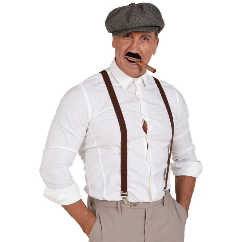 Komplektą sudaro: kepurė, petnešos, ūsai, cigaras