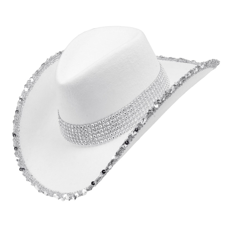 Balta kaubojiška kepurė su blizgučiais