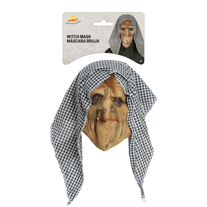 Lateksinė raganos kaukė su gobtuvu