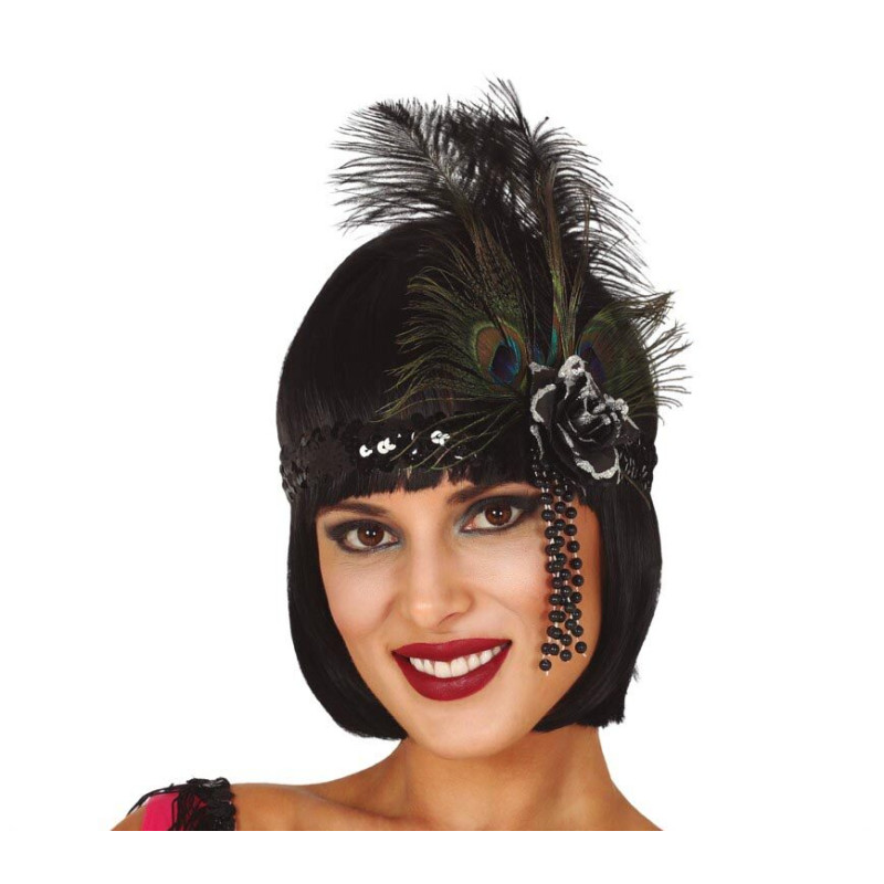 Juoda blizganti galvos juosta su plunksnomis