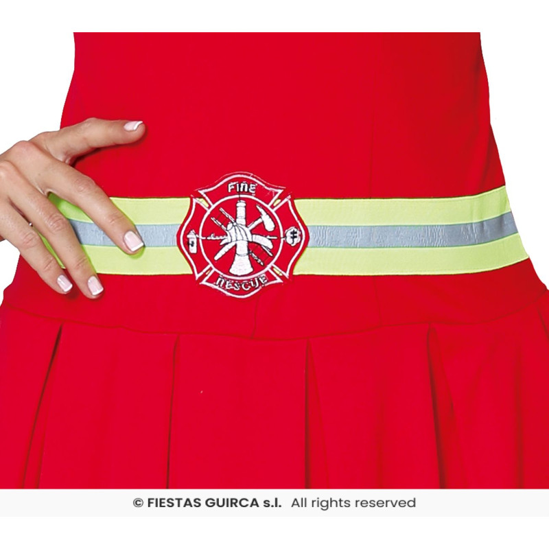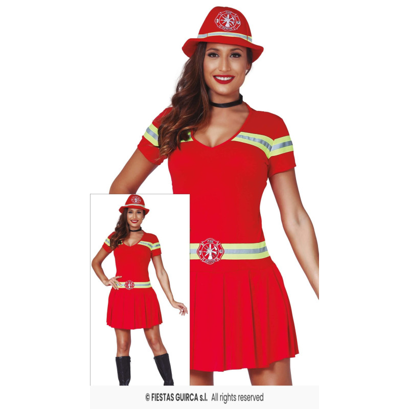 Moteriškas ugniagesės kostiumas: žavinga suknelė ir kepurė, suteikiantys drąsų ir stilingą ugniagesės įvaizdį – puikus pasirinkimas teminiams vakarėliams ar šventėms!