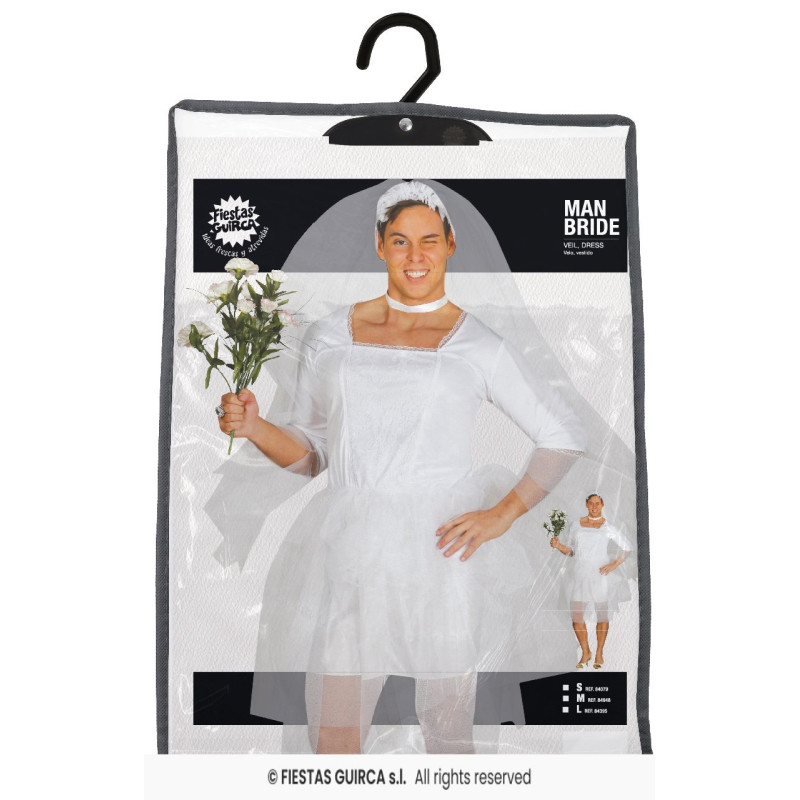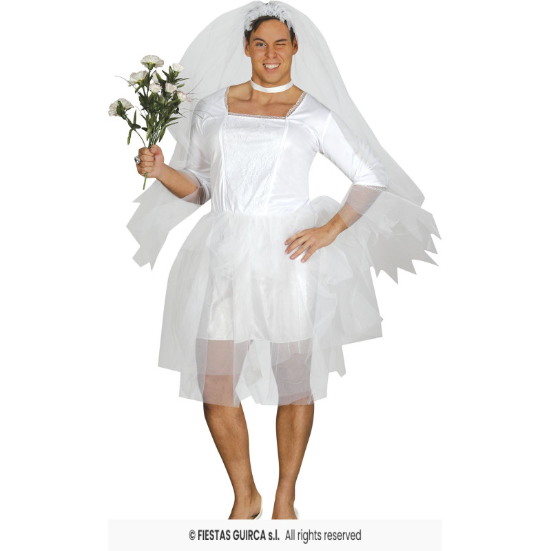 Nuotakos kostiumas vyrams – tai linksmas ir iššūkių nebijantis pasirinkimas, skirtas tiems, kurie nori prajuokinti aplinkinius ir sukurti nepamirštamą įvaizdį! Kostiumą sudaro klasikinio stiliaus balta suknelė, kuri suteikia šventiškumo, ir žavus nuometas, užbaigiantis netikėtą jaunosios įvaizdį. Patogi medžiaga leidžia laisvai judėti, todėl šis kostiumas puikiai tinka ilgiems vakarėliams ir šventėms, kuriose humoro jausmas ir drąsa išsiskirti yra būtini. Idealiai tinka teminiams renginiams, karnavalams ar bet kokiai progai, kai norisi sukelti šypsenas ir džiaugsmingą nuostabą!