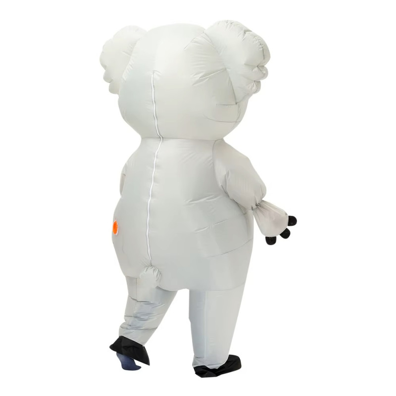 Pripučiamas suaugusiųjų koalos kostiumas - linksmas ir unikalus aprangos variantas įvairioms šventėms ir renginiams. Tinka žmonėms nuo 150 iki 190 cm ūgio. Komplektą sudaro kostiumas ir ventiliatorius. Ventiliatorius veikia naudojant 4 AA tipo baterijas (nepridedamos) arba per USB jungtį.