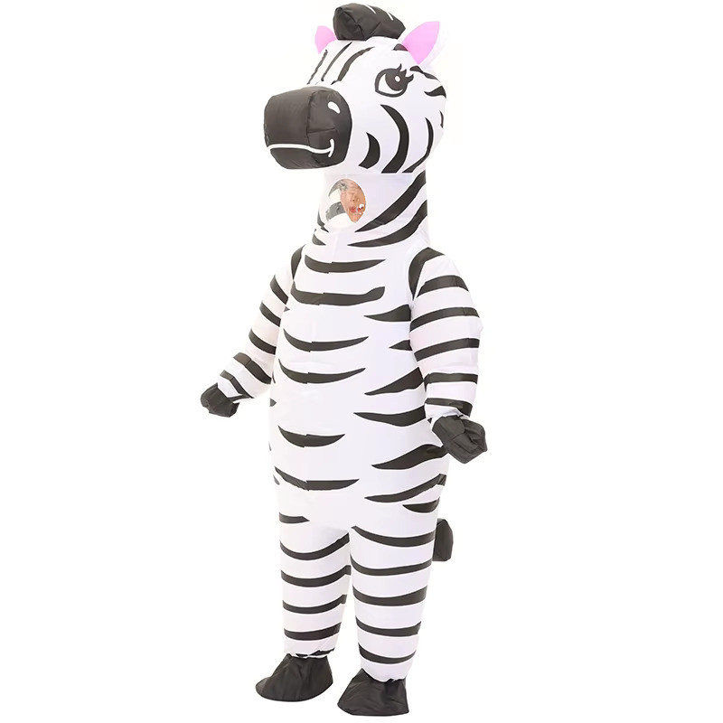 Pripučiamas dizainas suteikia zebrai įspūdingą formą ir apimtį, o mielos juodai baltos juostelės užtikrina, kad atrodysite visiškai kaip tikra zebra! Viduje pakanka erdvės judėti, šokti ir mėgautis šventės atmosfera.