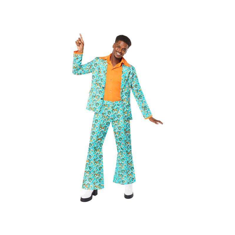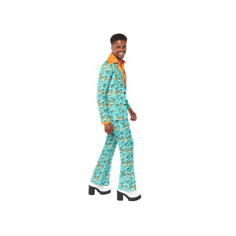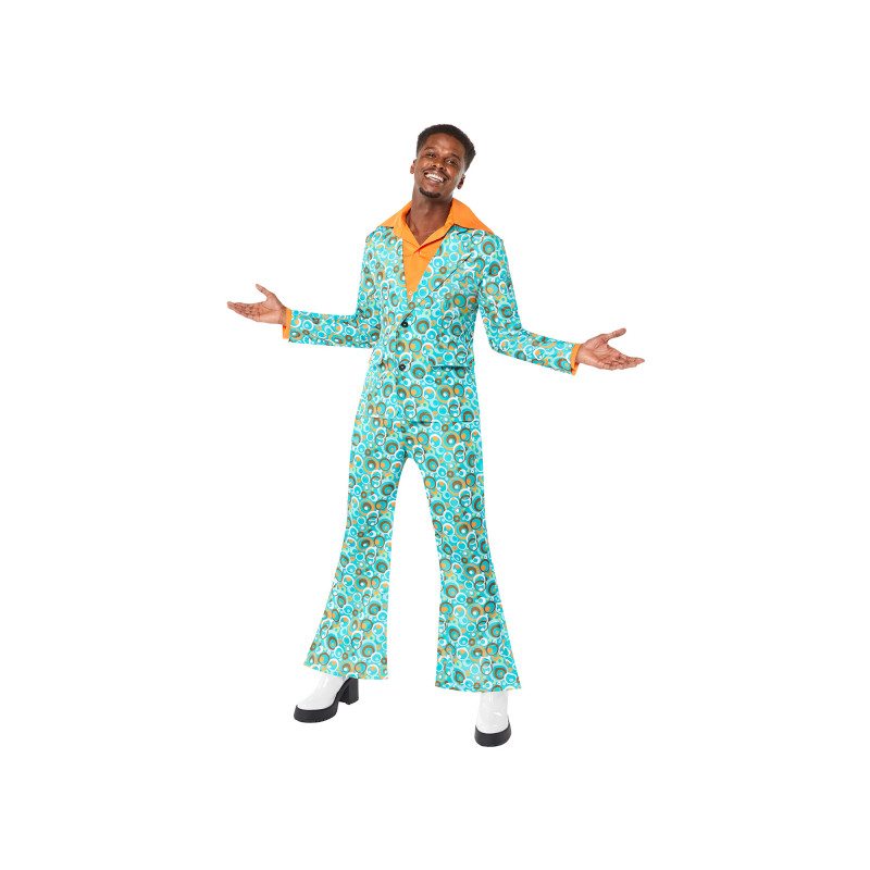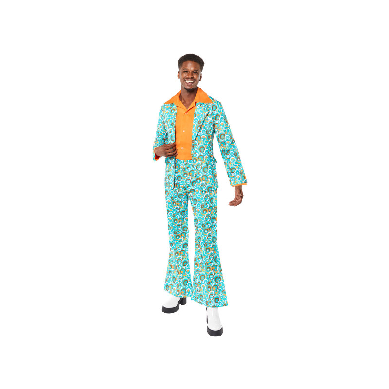 Apvilkti šį ryškų 70-ųjų vakarėlio kostiumą vyrams ir tapti tikra diskotekos žvaigžde! Spalvingas raštuotas švarkas, derinti kelnes ir stilingas dizainas suteiks autentišką retro išvaizdą bet kokiam teminiam renginiui.