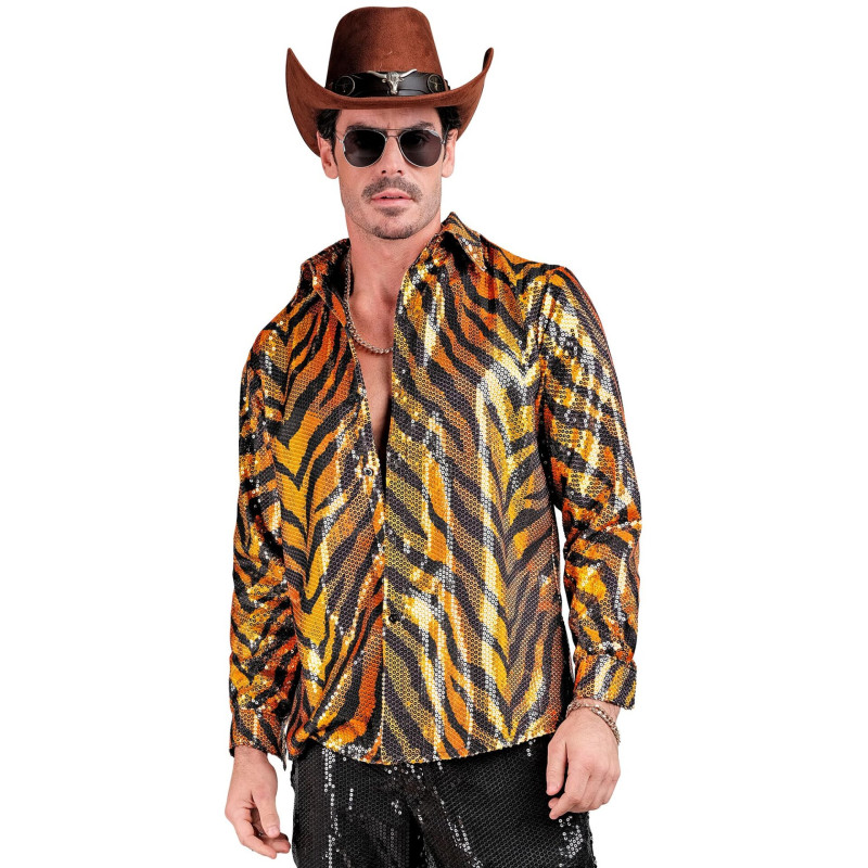 Kostiumą sudaro: marškiniai su tigro raštu ir blizgučiais