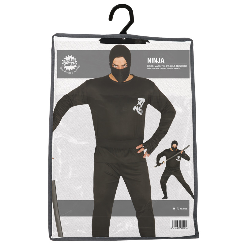 Komplektą sudaro kelnės, marškinėliai, diržas, kaukė ir gobtuvas – viskas, ko reikia pilnam nindzės įvaizdžiui sukurti. Puikiai tinka vakarėliams, Helovinui ar vaidmenų žaidimams.