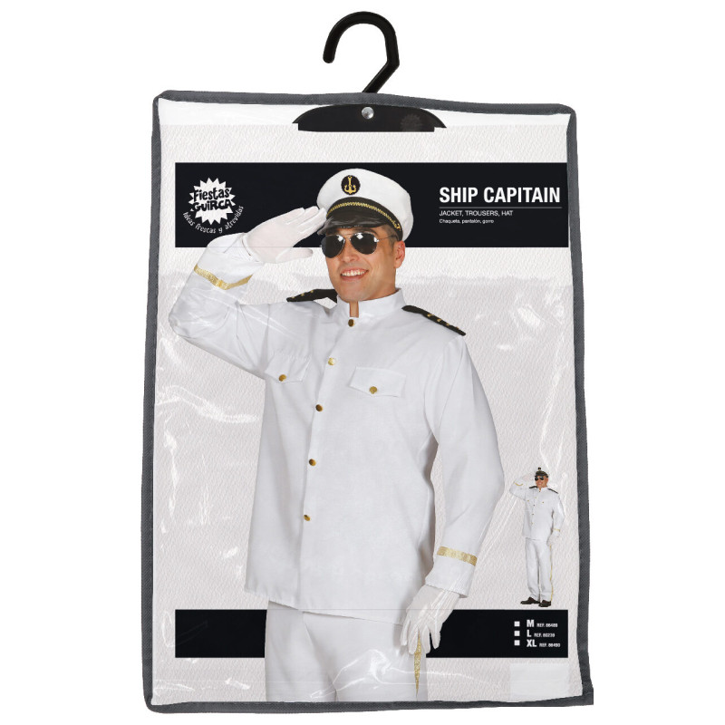 Šis vyriškas laivo kapitono kostiumas leis lengvai įsikūnyti į elegantišką ir autoritetingą jūrų kapitoną. Klasikinė balta spalva su auksinėmis detalėmis suteikia prabangos ir išskirtinumo.