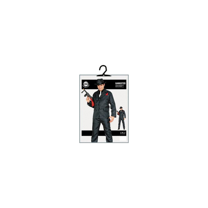Gangsterių kostiumo sudėtis: nosinaitė, švarkas, kelnės • Šis gangsterių suaugusiųjų vyro drabužis pagamintas iš poliesterio ir atitinka saugos standartus • Puikus pasirinkimas jūsų Charlestono, gangsterių tematiniams vakarėliams