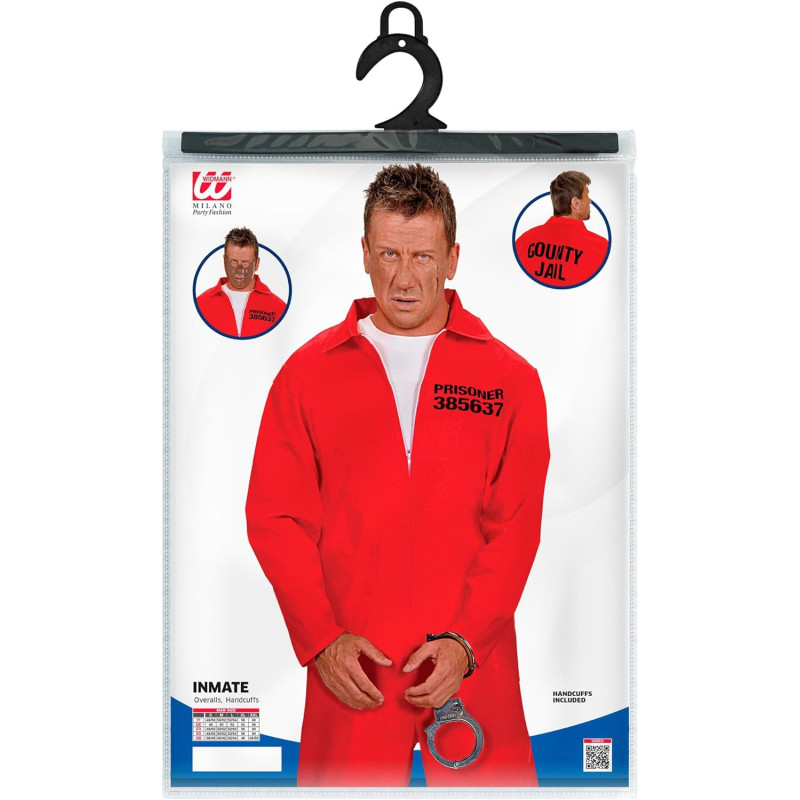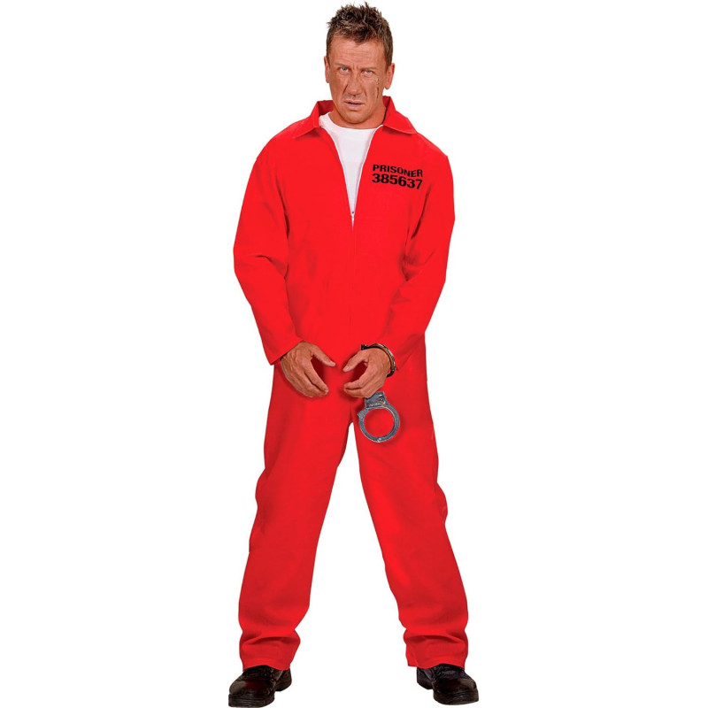 Pavirkite save į tikrą kalėjimo kalinį su šiuo kostiumu. Kostiumą sudaro ryškus raudonas kombinezonas su apykakle ir antrieji, suteikiantys įtikinamą kalinio išvaizdą. Užrašas „385637 Kalinys“ ant kairės krūtinės pusės ir „COUNTY JAIL“ ant nugaros puikiai papildo kostiumą vizualiai. Užtrauktukas ant kombinezono priekio palengvina jo užsidėjimą ir nuėmimą.