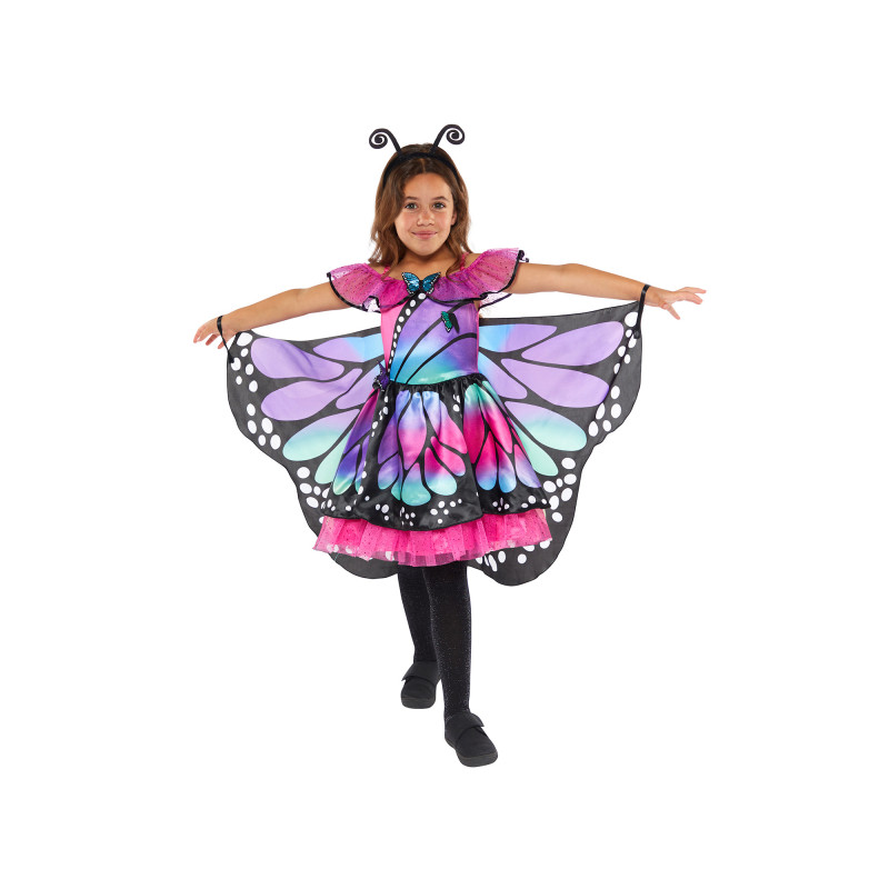 Paverskite savo mažylę stebuklingu drugeliu su šiuo gražiu drugelio kostiumu mergaitėms! Komplektą sudaro elegantiška spalvinga suknelė, kurią puošia žaismingos detalės, lengvi ir plačiai išskleidžiami drugelio sparnai bei mielas lankelis su antenėlėmis. Šis kostiumas idealiai tinka teminiams vakarėliams, pasirodymams, karnavalams ar tiesiog smagiems persirengimo žaidimams. Patogus, lengvas ir ryškus – jis suteiks daug džiaugsmo ir leis pasijusti tikru pasakų sparnuočiu!