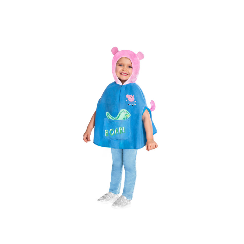 Peppa Pig George kostiumas vaikams – puikus pasirinkimas mažiesiems, mėgstantiems populiarų animacinį serialą „Peppa Pig“. Minkštas kostiumas su gobtuvu ir ausytėmis leidžia vaikui lengvai įsijausti į George personažą, o priekyje esanti dekoratyvinė kišenėlė su dinozauru suteikia kostiumui žaismingumo.