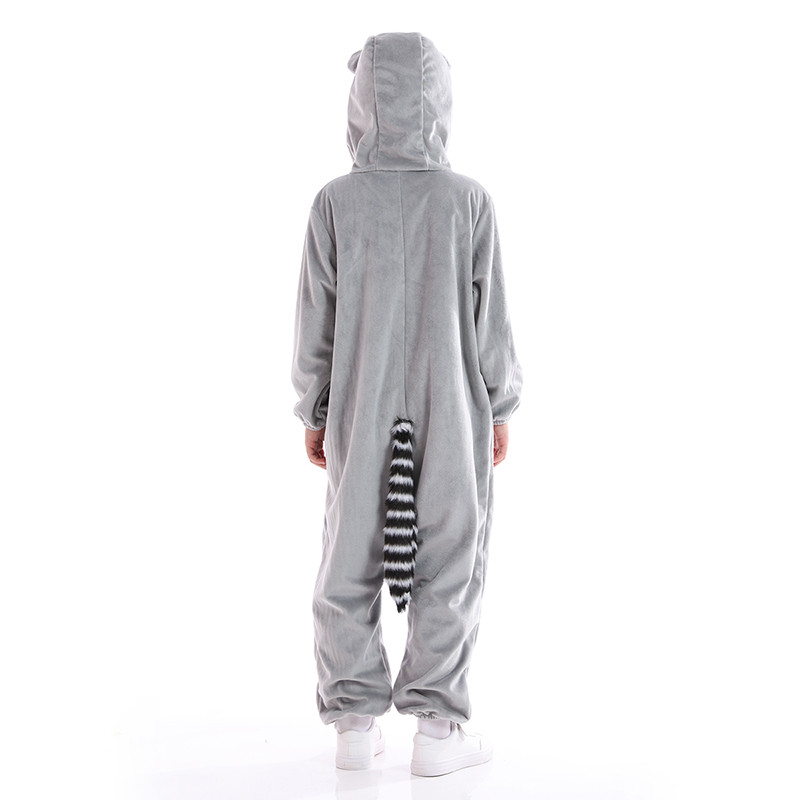 Gobtuvas dekoruotas meškėno veiduku ir ausytėmis, o nugaroje pritvirtinta būdinga dryžuota uodega, kuri suteikia kostiumui žaismingumo ir tikroviškumo. Laisvas kirpimas nevaržo judesių, todėl vaikas galės laisvai žaisti, šokti ar dalyvauti pasirodymuose.