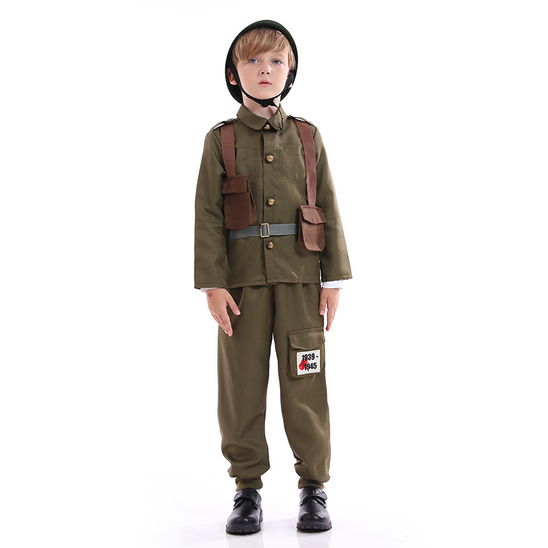 Šis kareivio kostiumas sukurtas taip, kad atkurtų klasikinę karinę uniformą. Komplektą sudaro marškiniai su sagomis, derančios kelnės bei šalmas, suteikiantis autentišką įvaizdį.