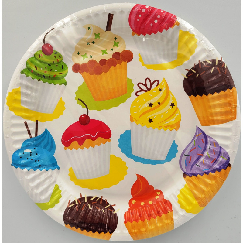 Vienkartinės popierinės lėkštės „Cupcake“ skirtos patogiam stalo serviravimui vaikų gimtadieniuose, šeimos šventėse, teminiuose vakarėliuose ar piknikuose. Spalvingas keksiukų raštas suteikia stalui žaismingumo ir lengvai derinamas su kitomis šventinėmis dekoracijomis bei vienkartiniais indais.