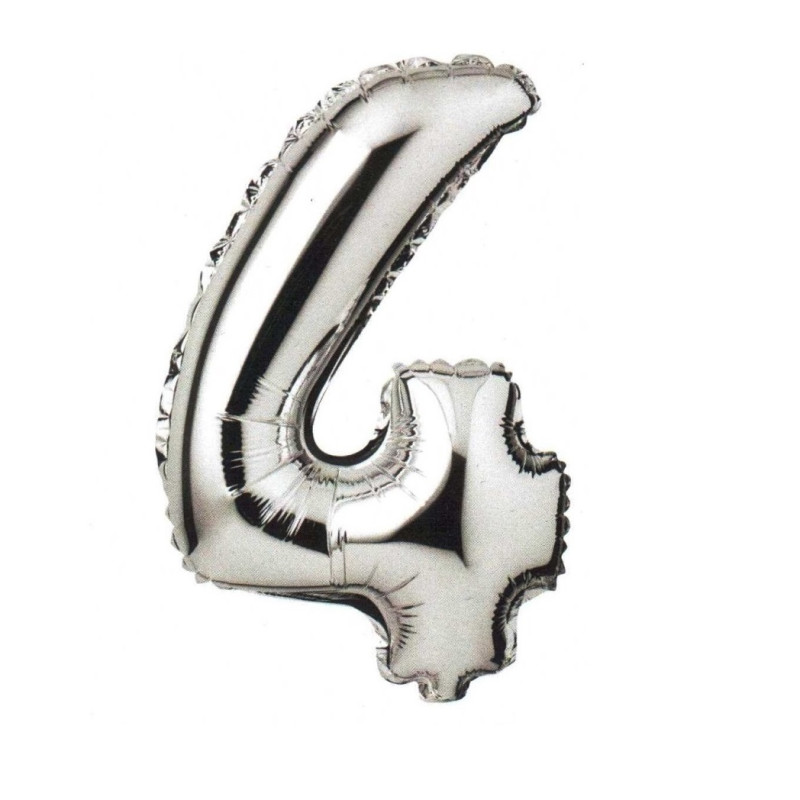 Folijos balionas, skaičius 4, sidabrinės spalvos, 1 vnt.