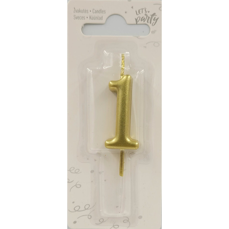 Gimtadienio žvakė, skaičius 1, auksinės spalvos, 1 vnt.