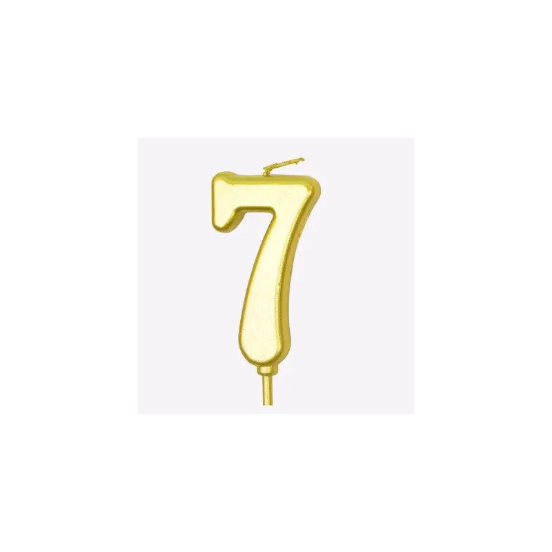 Gimtadienio žvakė, skaičius 7, auksinė spalva, 1 vnt.